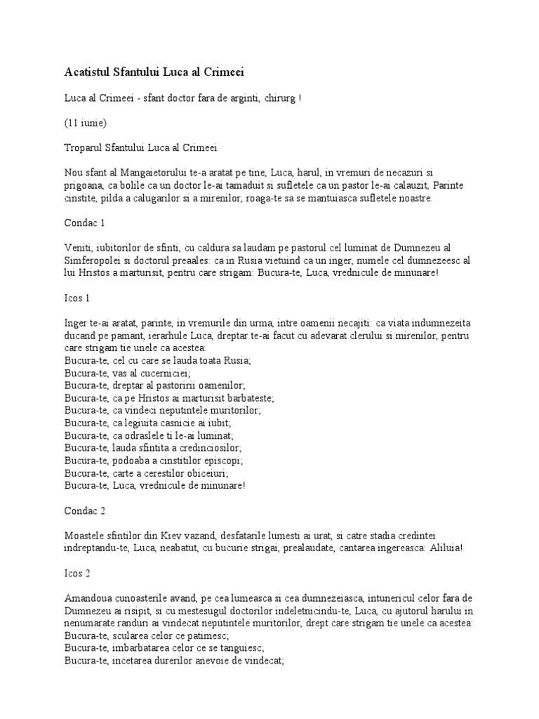 Acatistul Sfantului Luca Al Crimeei Crestinortodox Ro