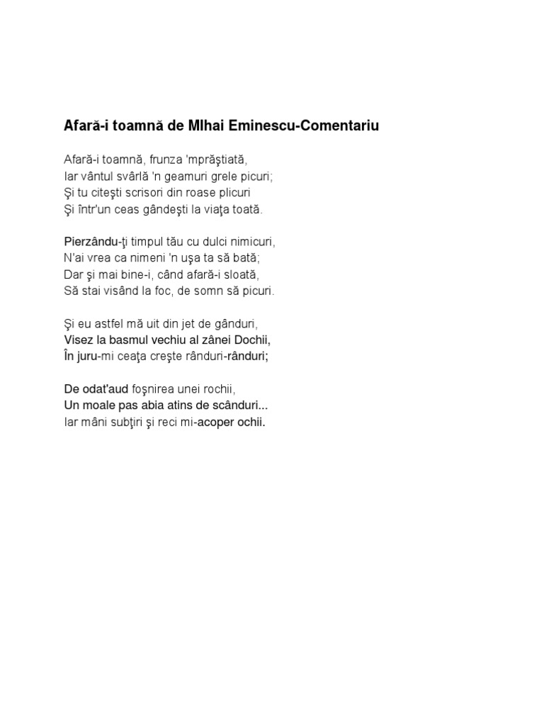 Cine Imi Face Si Mie Un Comentariu Literar Al Poeziei Afara I Toamna De Mihai Eminescu Nu Vreau Sa Brainly Ro