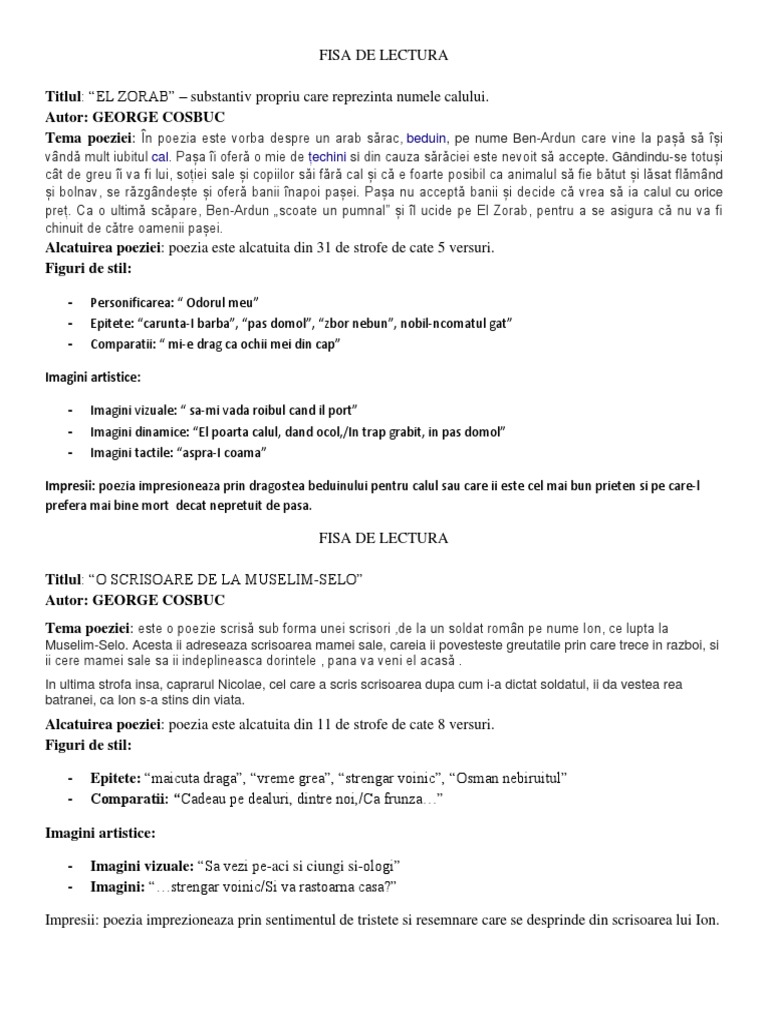 Fisa De Lectura El Zorab Scrisoare Muselim Selo