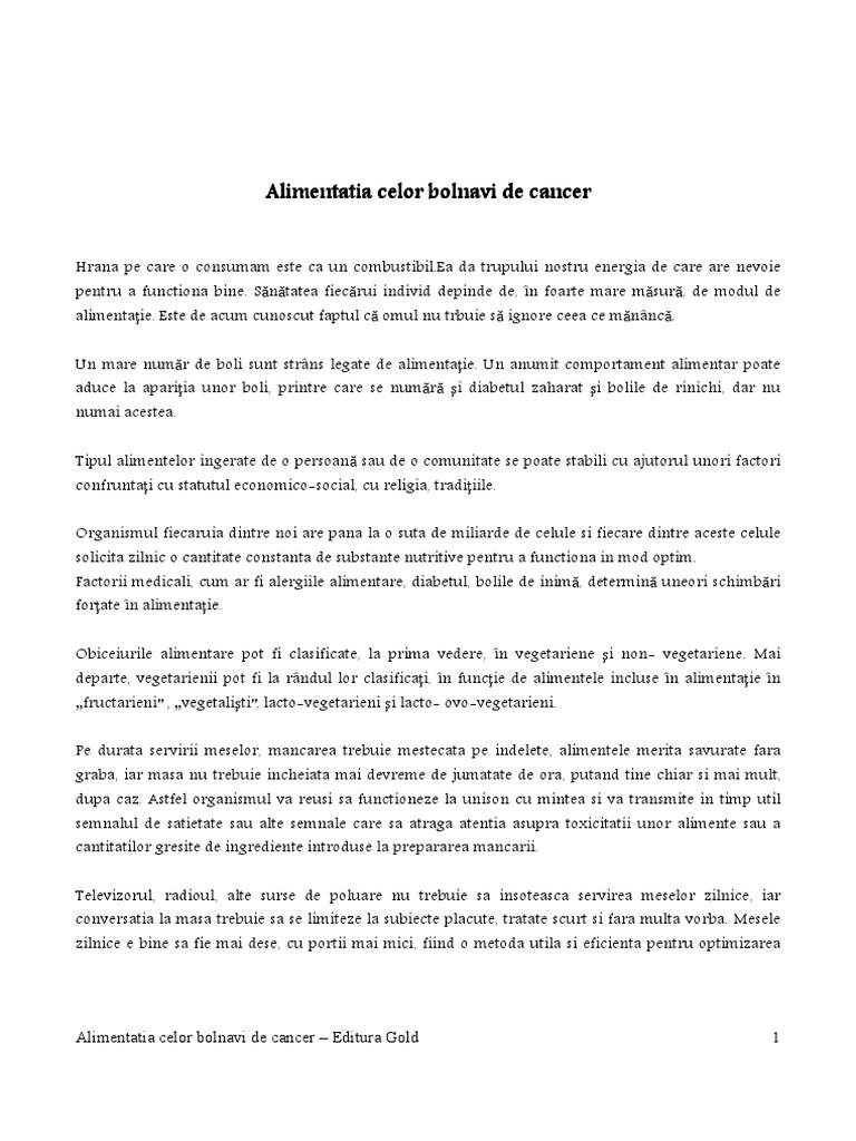 Brosura Alimentatia Celor Bolnavi De Cancer