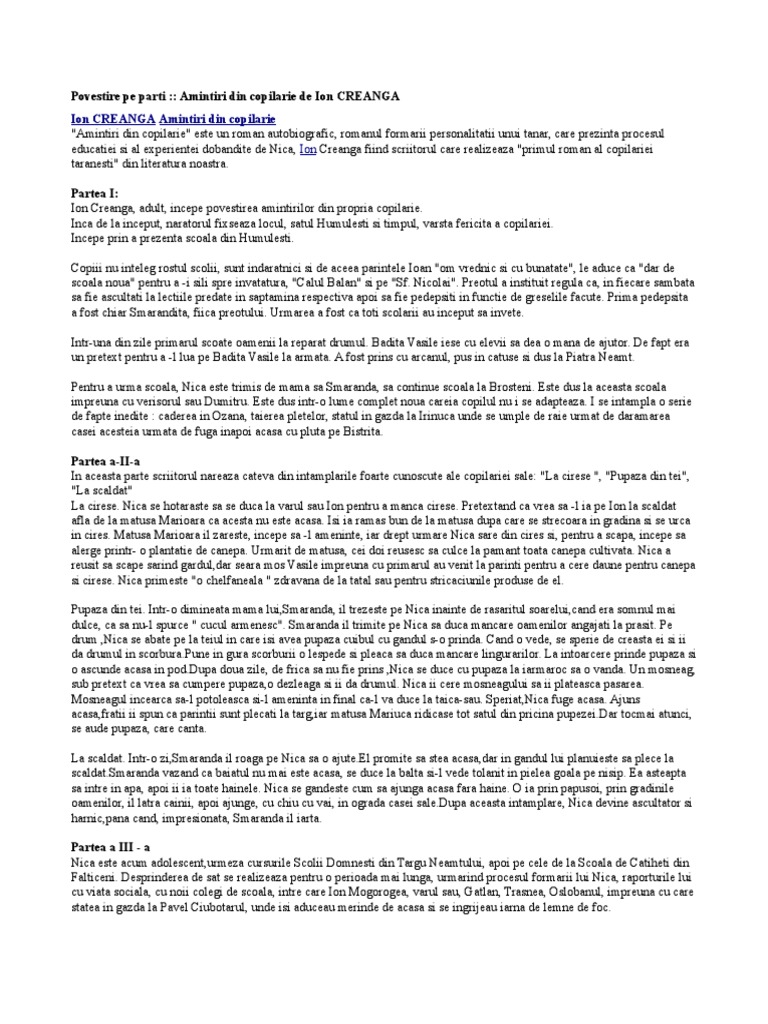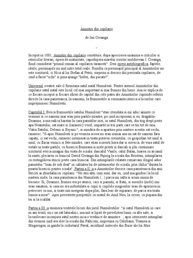 Rezumatul Operei Amintiri Din Copilarie