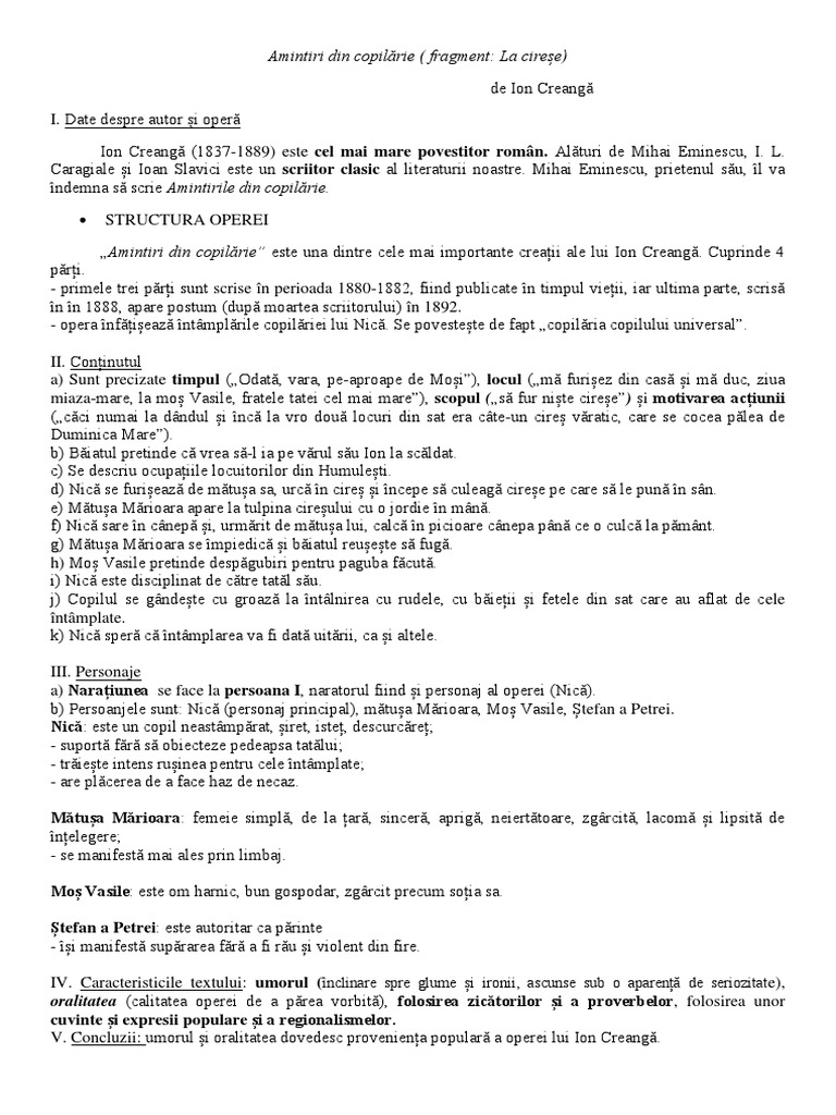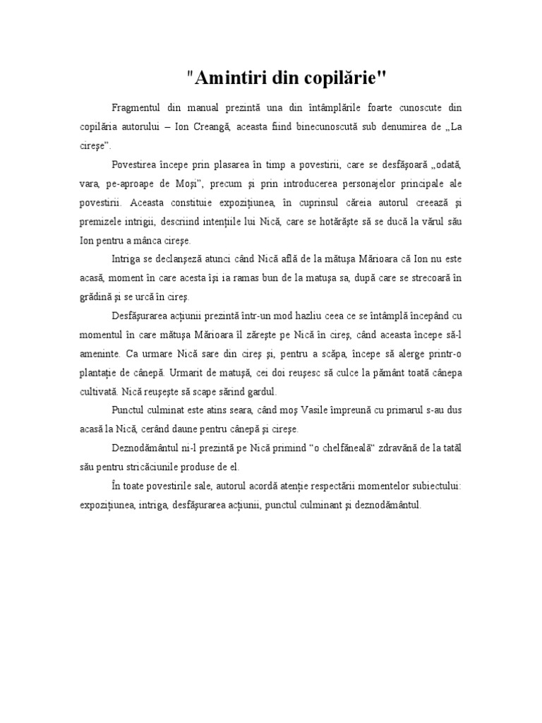 Amintiri Din Copilărie La Cireșe Docx