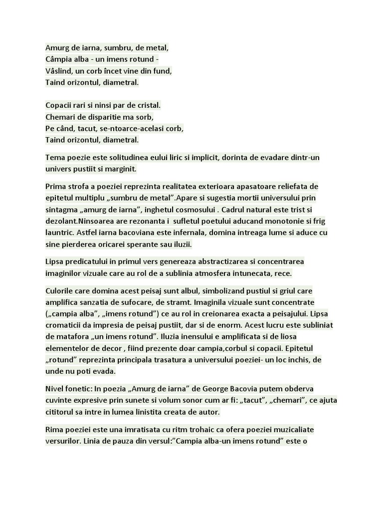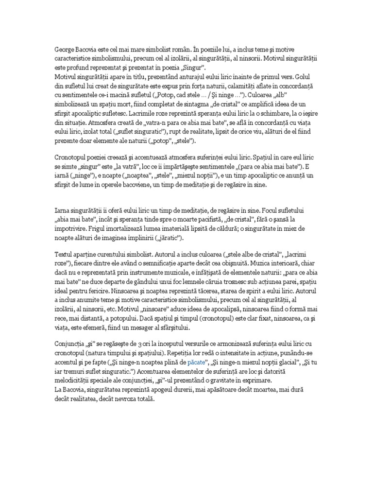 Doc Plumb De George Bacovia Simbolism Comentariu Bac Anca Nicolae Academia Edu