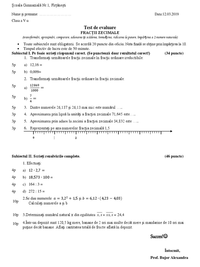 Test Fractii Zecimale