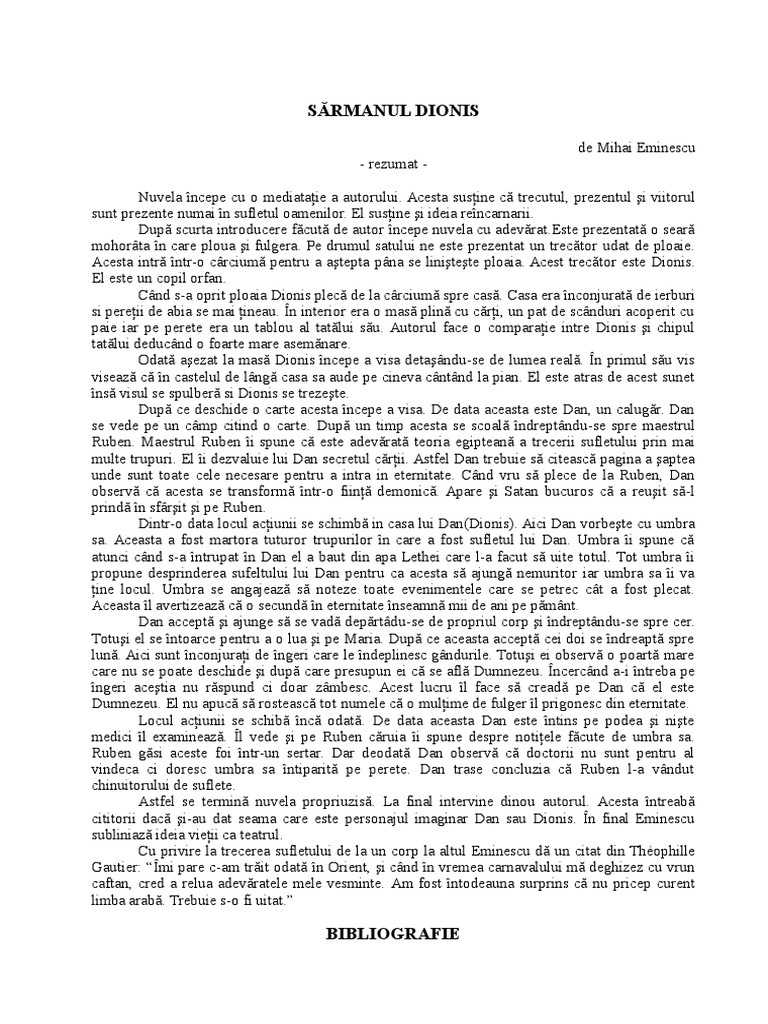 Mihai Eminescu Sarmanul Dionis Rezumat