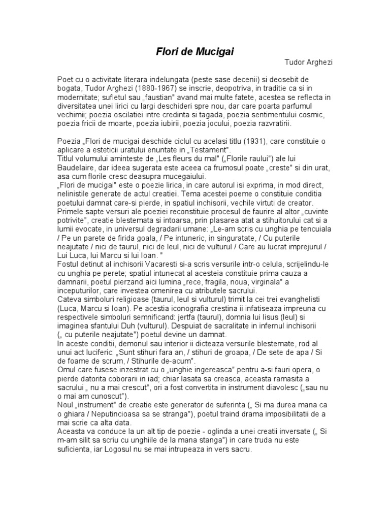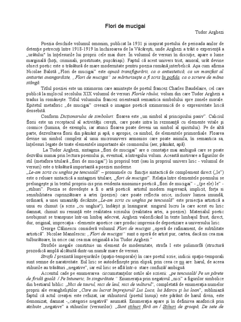 Versuri Tudor Arghezi Flori De Mucigai Docx