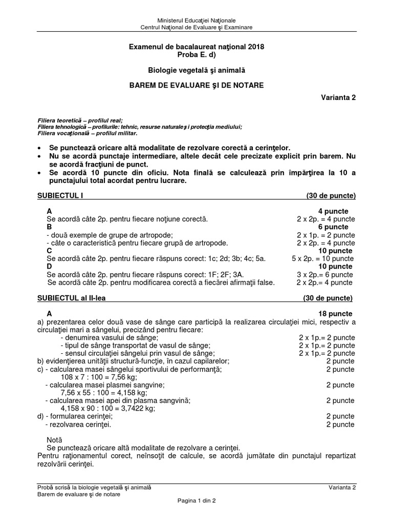 Subiecte Biologie Vegetală și Animală 2018 Edu Ro Avem Baremul De Corectare La Examenul De Bacalaureat Person Personalized Items