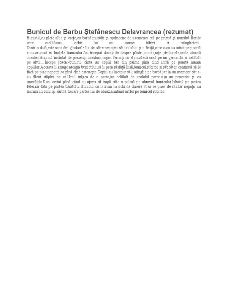 Rezumat Scurt Bunicul De Barbu ștefănescu Delavrancea Rezumate Cărți Citeste Cărți Online Pdf Caracterizări Referate Si Comentarii Cărți