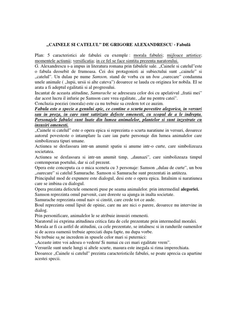 Fisă De Lectură Cainele Si Catelul Gr Alexandrescu