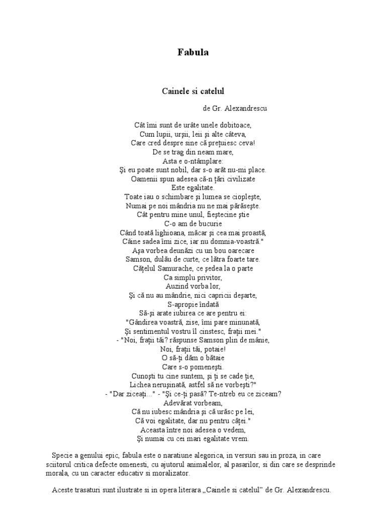 Referat Demostratia Ca O Opera Literara Apartine Genului Fabula Cainele Si Catelul Grigore Alexandrescu 341608 Graduo