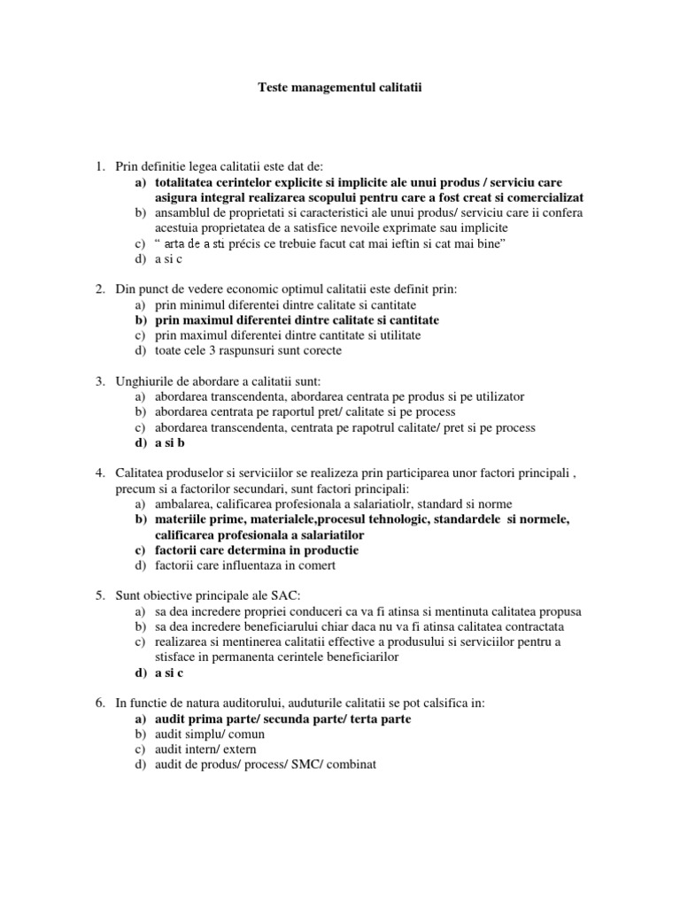 Calitatea Produselor Si A Serviciilor Clasa A Ix A