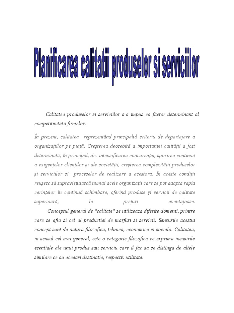 Planificarea Calitatii Produselor Si Serviciilor