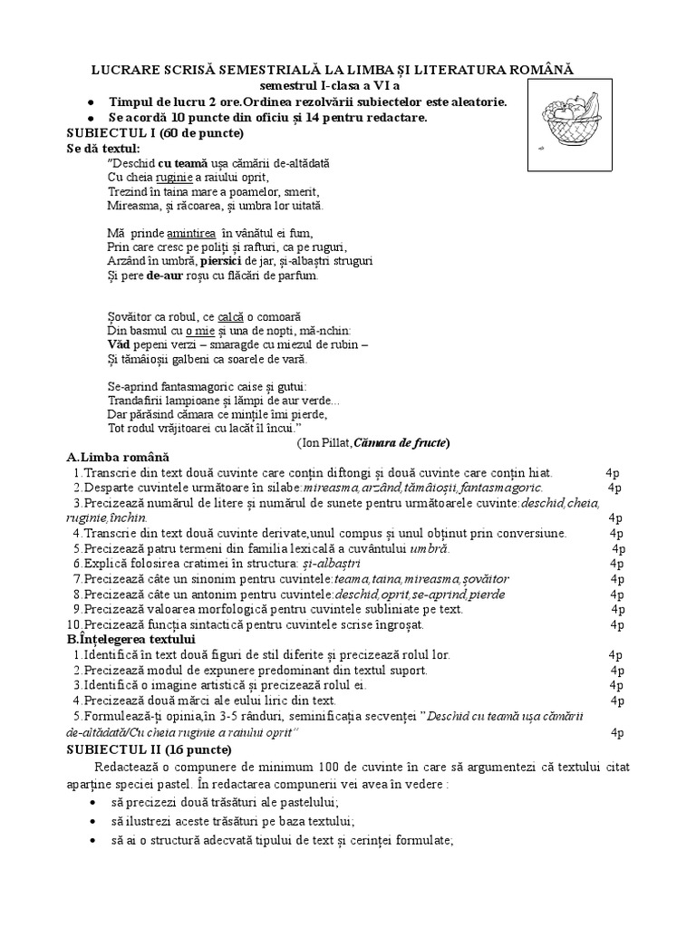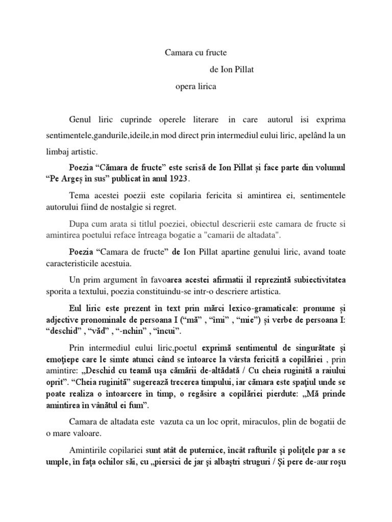 Fragmente Cu Specific Romanesc Din Poezia Camara De Fructe De Ion Pillat Repede Dau Coroană Brainly Ro