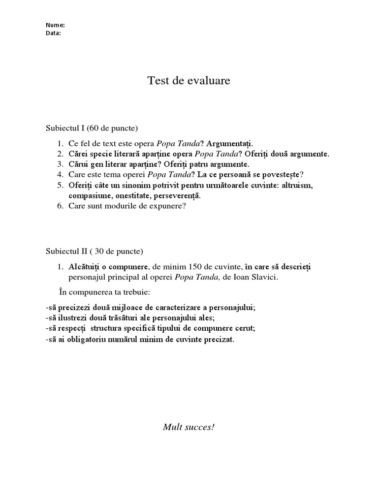 Teză Limba Si Literatura Romană Clasa A Vii A Semestrul Al Ii Lea Hlihorlenuta 17 05 2011 Education