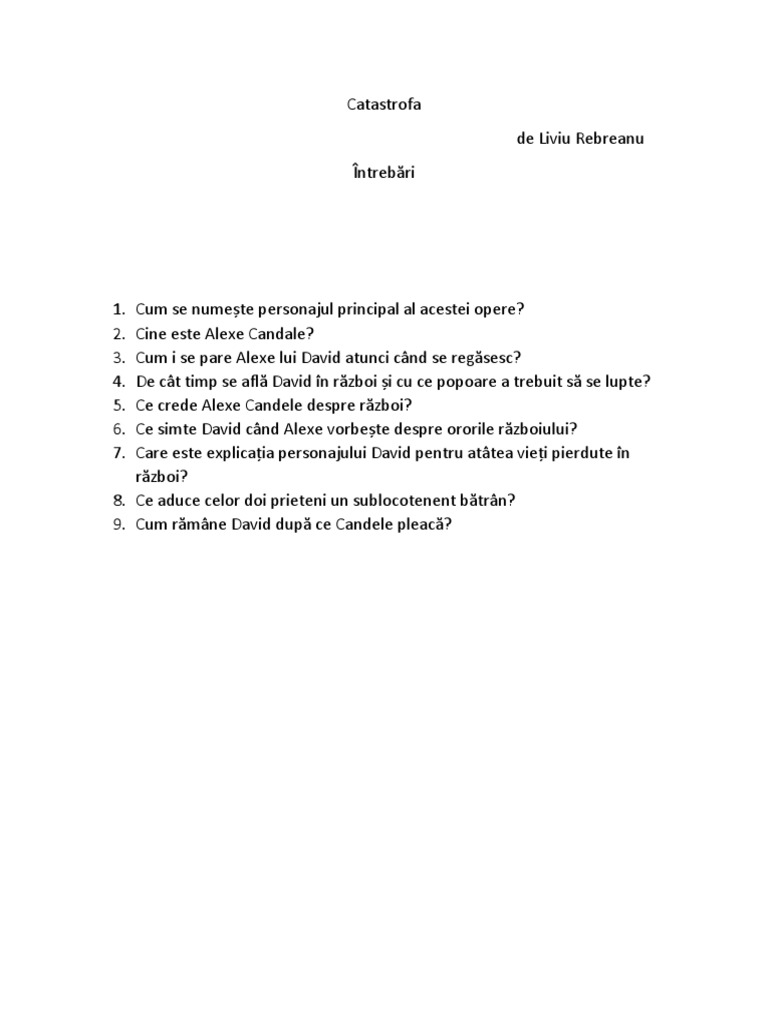 Referat Catastrofa De Liviu Rebreanu 327210 Graduo