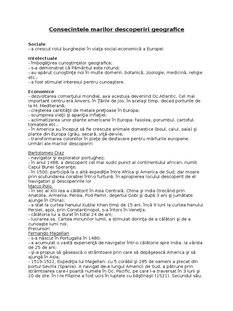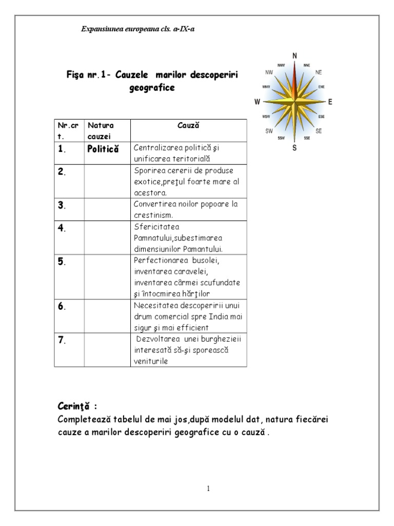 Fisa De Lucru Cauze Marile Descoperiri Geografice