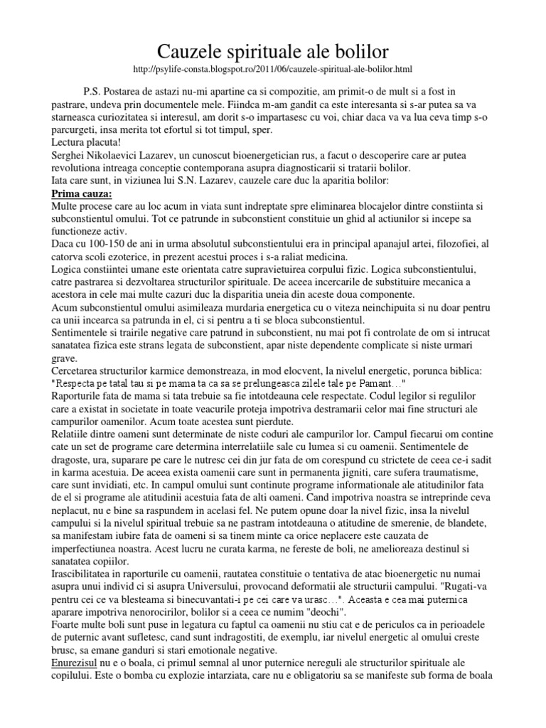 Cauzele Spirituale Ale Bolilor Lazarev Pdf