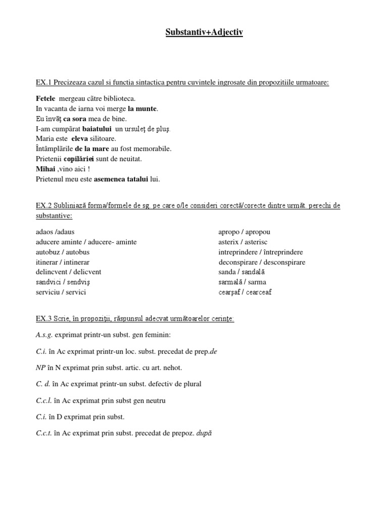 Exercitii Substantiv Adjectiv