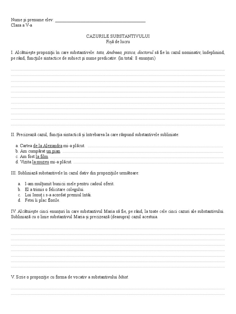 Fisa De Lucru Cazurile Substantivului
