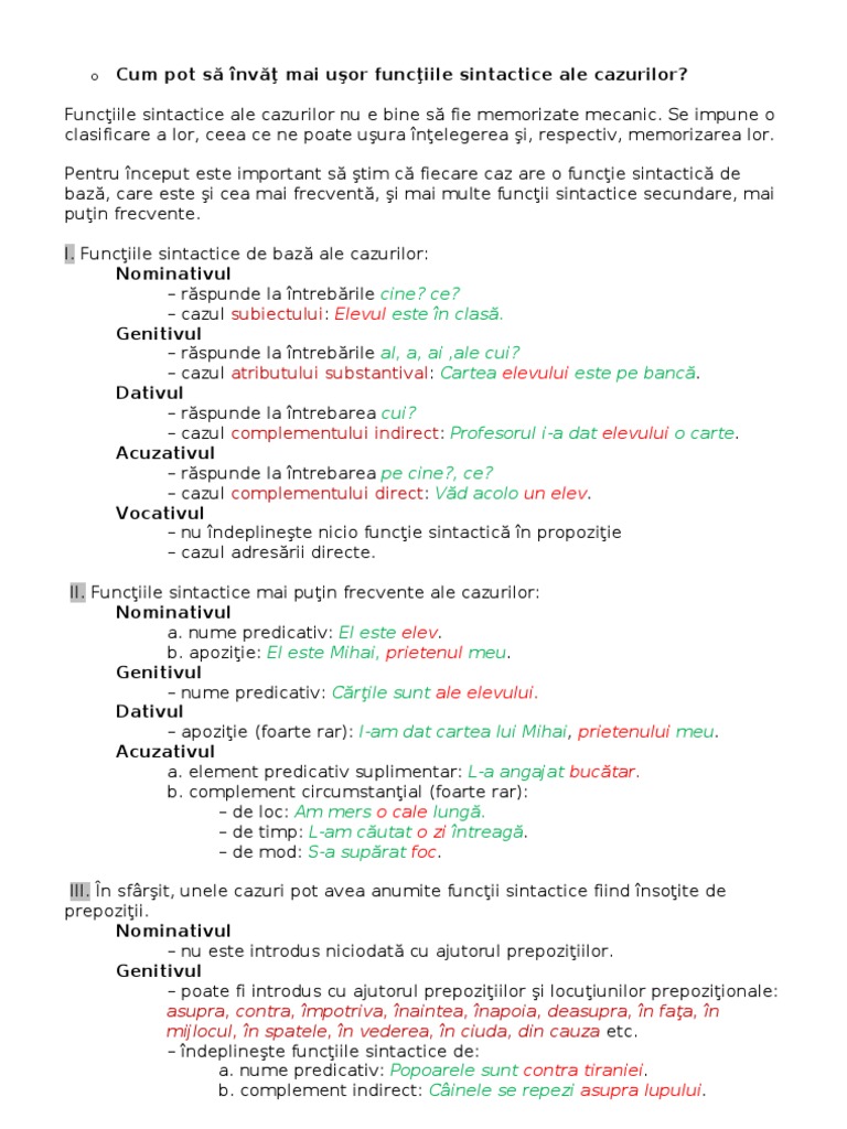 Cazuri Si Functii Sintactice