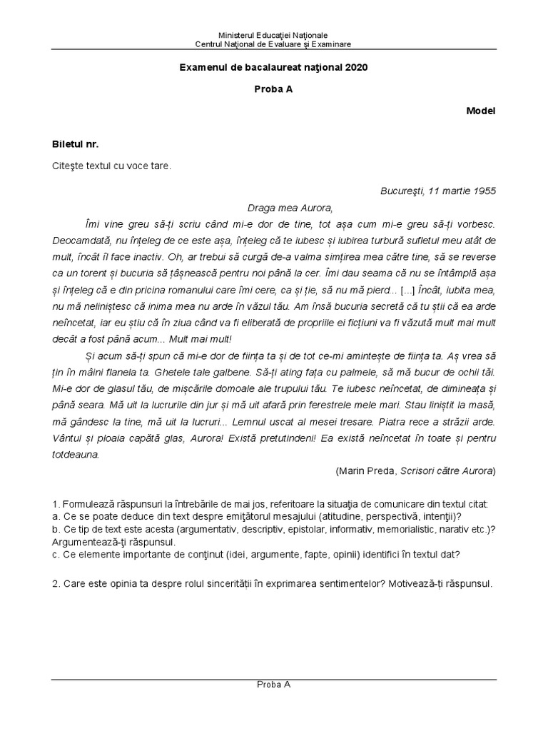 Proba Orală Bac Romană Model De Subiect 2015 Liceunet Ro
