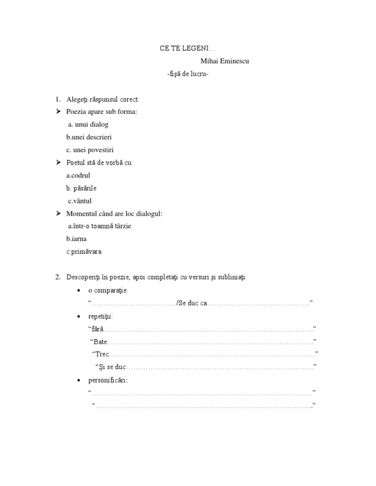 Comentarii La Fix Ce Te Legeni De Mihai Eminescu