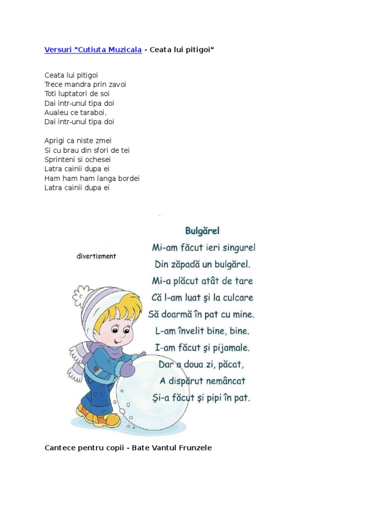 Colectia De Versuri Cantecele Copilarie Cantece Pentru Gradinita Pdf Document