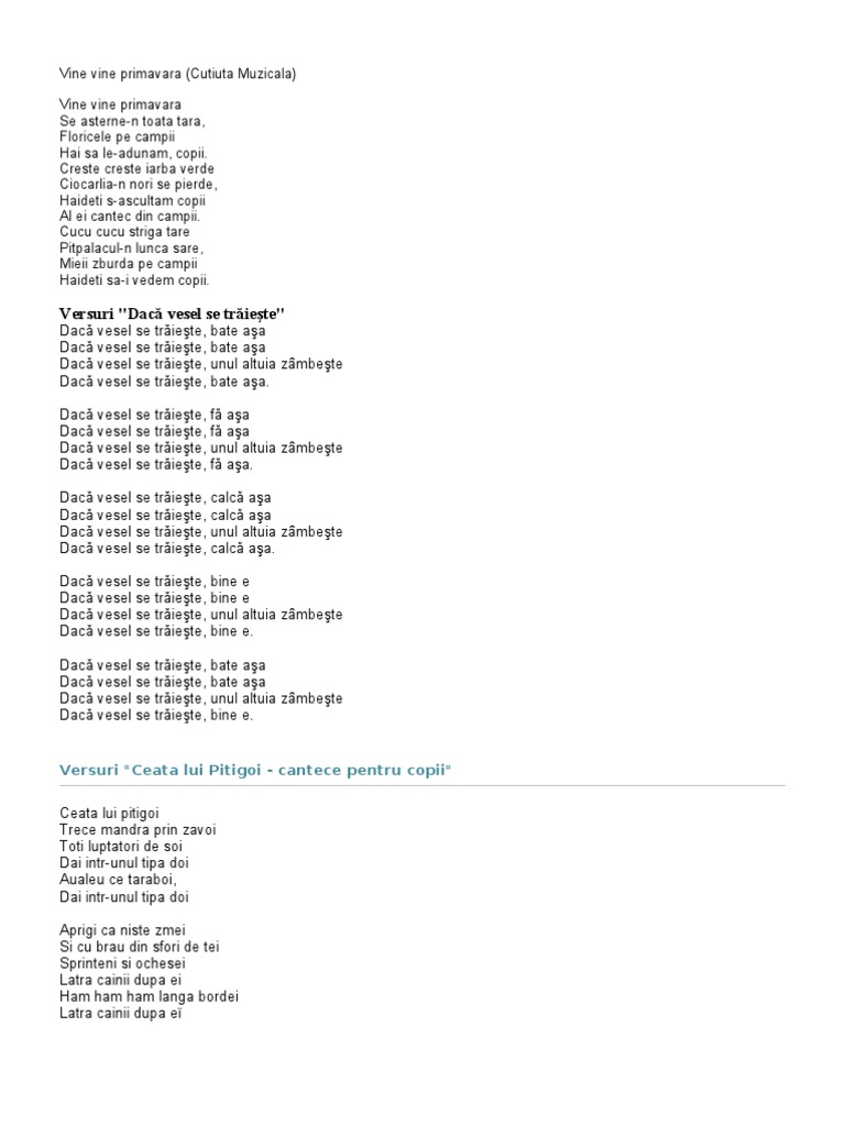 Versuri Cantece Copii