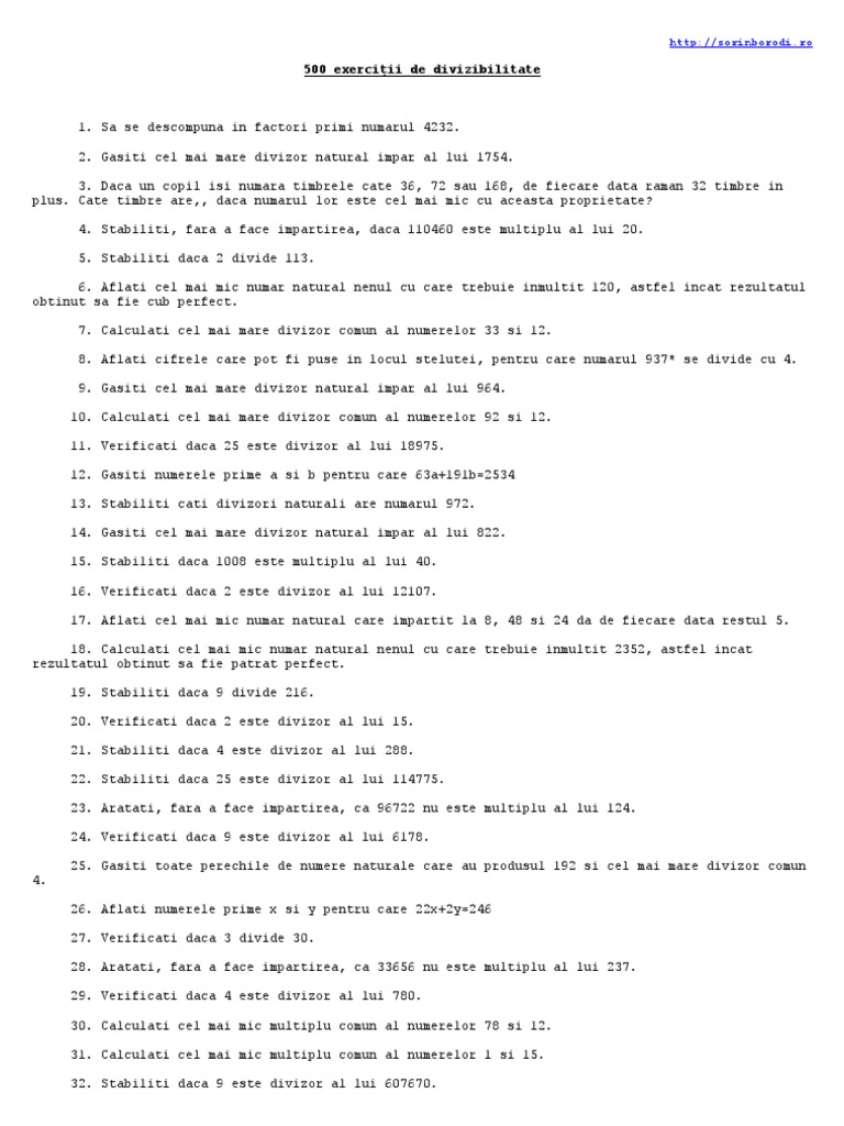 Mate Exercitii Divizibilitate