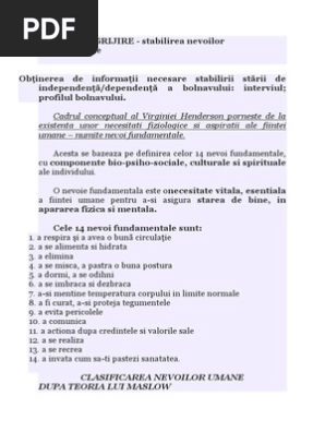 Virginia Henderson Cele 14 Nevoi Fundamentale Pagina De Nursing