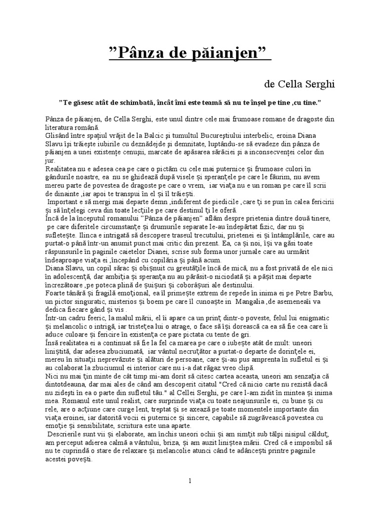 Comentariu Panza De Păianjen De Cella Serghi Rezumate Cărți Citeste Cărți Online Pdf Caracterizări Referate Si Comentarii Cărți