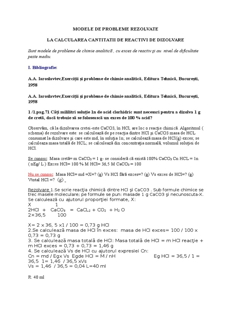 Modele De Probleme Rezolvate Docx Chimie Analitica