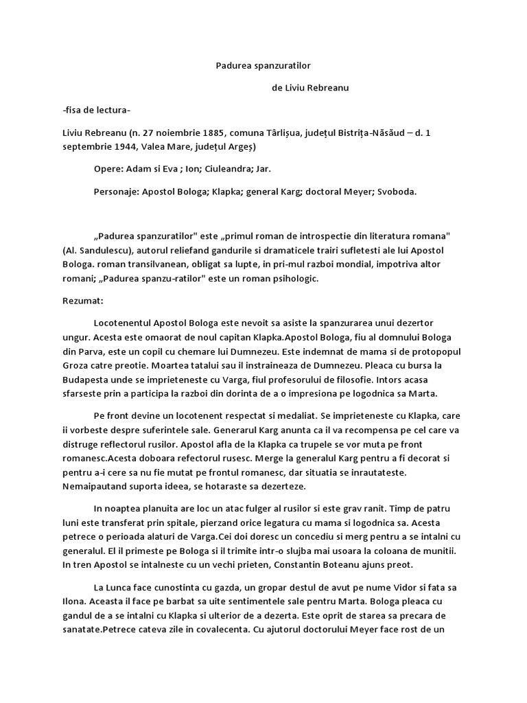 Padurea Spanzuratilor Liviu Rebreanu Pdf Carte Pdf Citești Instant