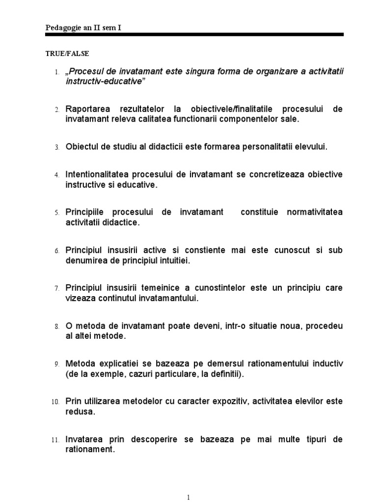Pedagogie Cu Elemente De Psihologie și De Sociologie Educațională Cursuri Procesul De Invatamant Ca Obiect Al Didacticii
