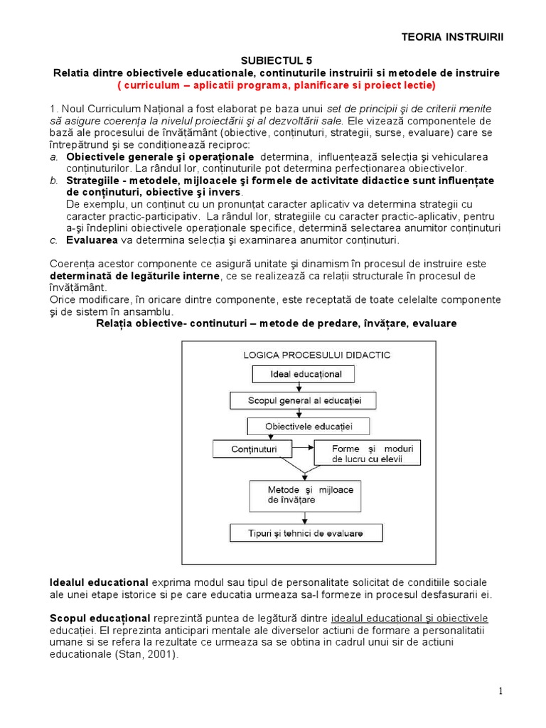 Relatia Dintre Obiectivele Educationale Continuturile Instruirii Si Metodele De Instruire