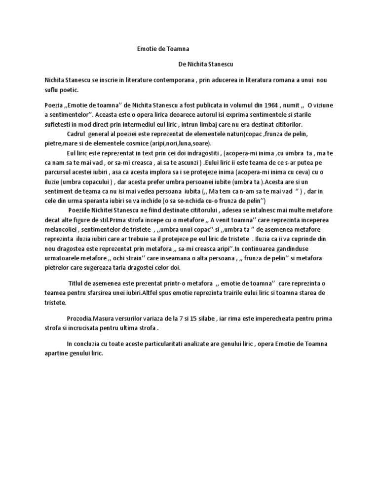 Emotie De Toamna Genul Liric