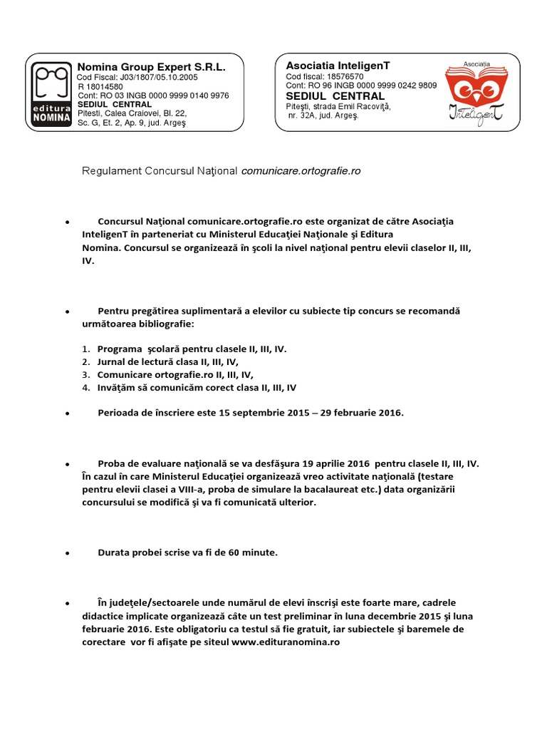 Concursul Naţional Comunicare Ortografie Ro Scoala Gimnaziala Nr 1 Onesti