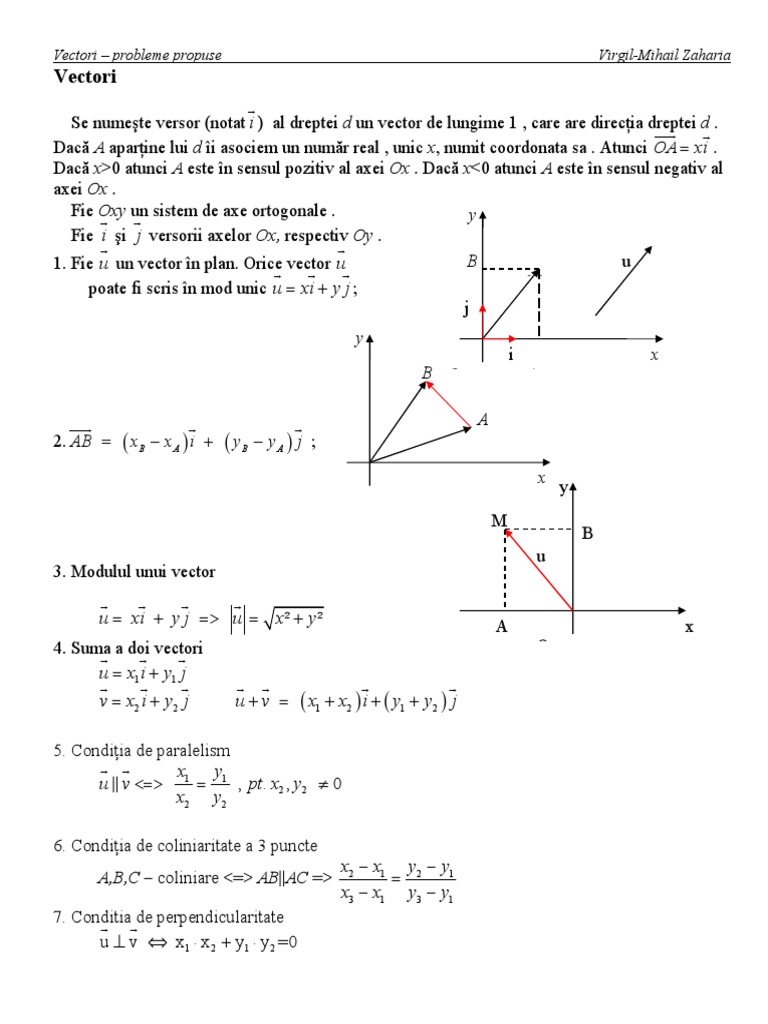 Operatii Cu Vectori Si Coliniaritatea A Doi Vectori
