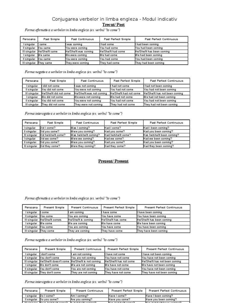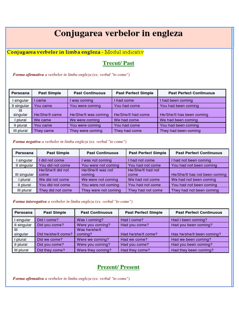 Trecut past forma afirmativa a verbelor in limba engleza ex. Articolul conjugarea verbelor in engleza va este oferit de catre www gramatica limbii engleze online ro. Past simple i came you came he she it came we came you came they came. în lista de mai jos sunt enumerate majoritatea verbelor neregulate din limba engleză împreună cu conjugările lor respectiv traducerea.