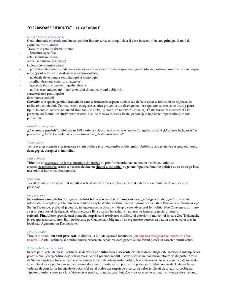 Doc O Scrisoare Pierduta Ion Luca Caragiale Grosu Gabriel Academia Edu