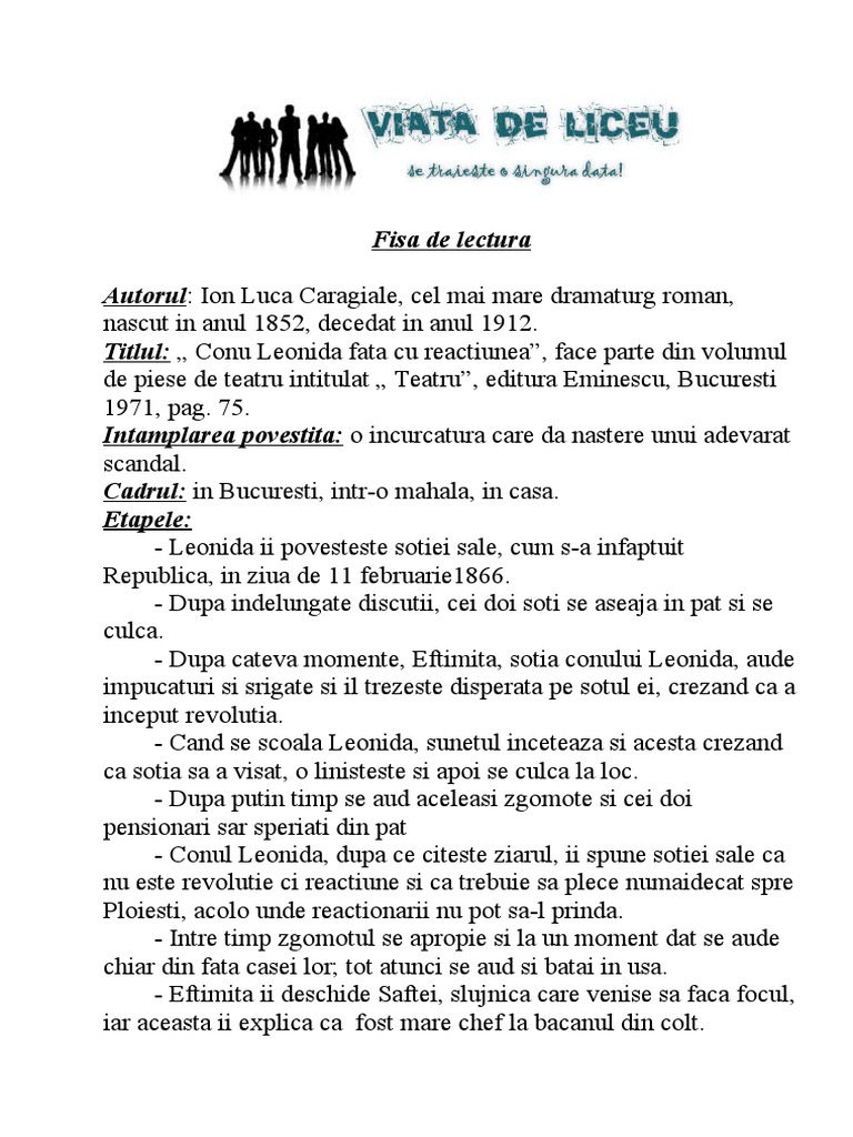 Fisa De Lectura Conu Leonida Fata Cu Reactiunea