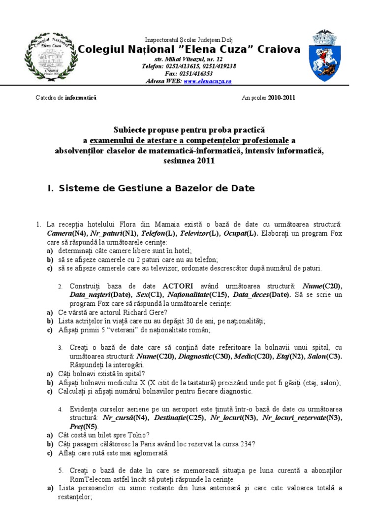 Subiecte Proba Practica