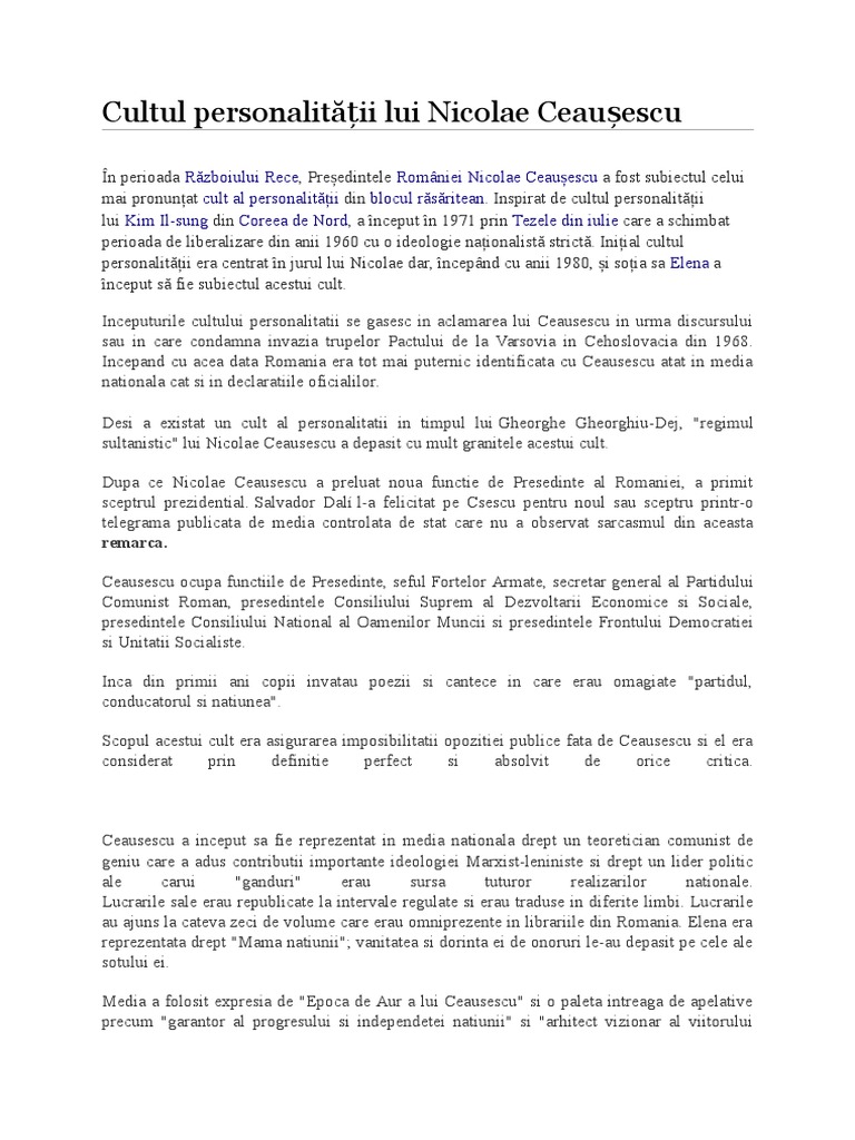 Cultul Personalității Lui Nicolae Ceaușescu Wikipedia
