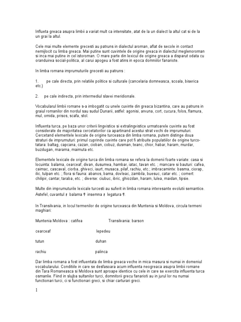 Cuvinte De Origine Turca Pastrate In Limba Romana