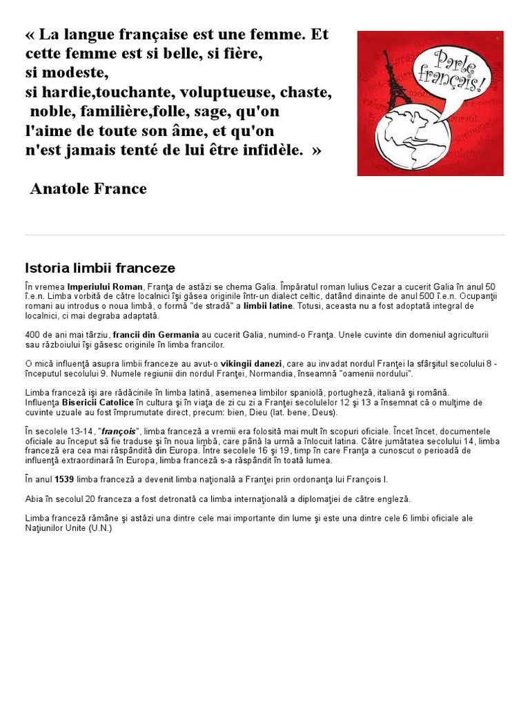 Cunoscută In Intreagă Lume Pentru Linia Ei Melodioasă Limba Franceză Are Statutul De Cea Mai Romantică și Frumoasă Limbă Avand Același Fond Latin Că Tableware