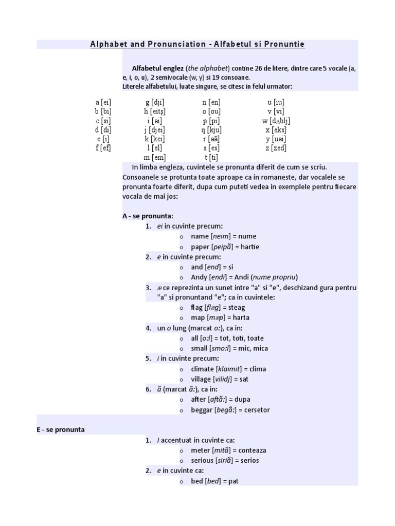 Alfabetul Si Pronuntia Cuvintelor In Engleza