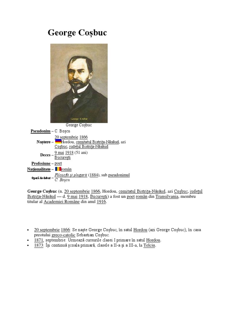 Biografie George Cosbuc Istorie Pe Scurt