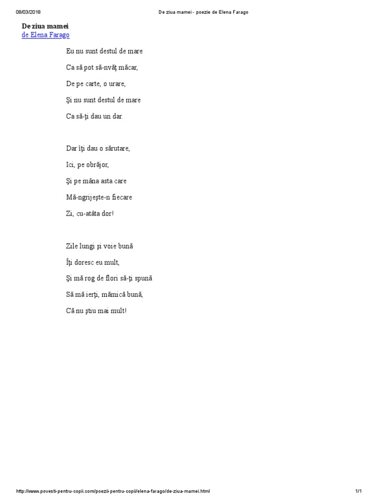 De Ziua Mamei Poezie De Elena Farago
