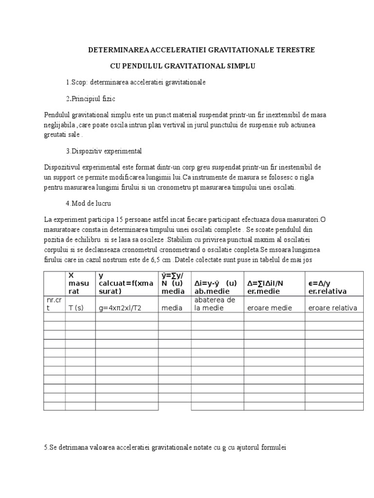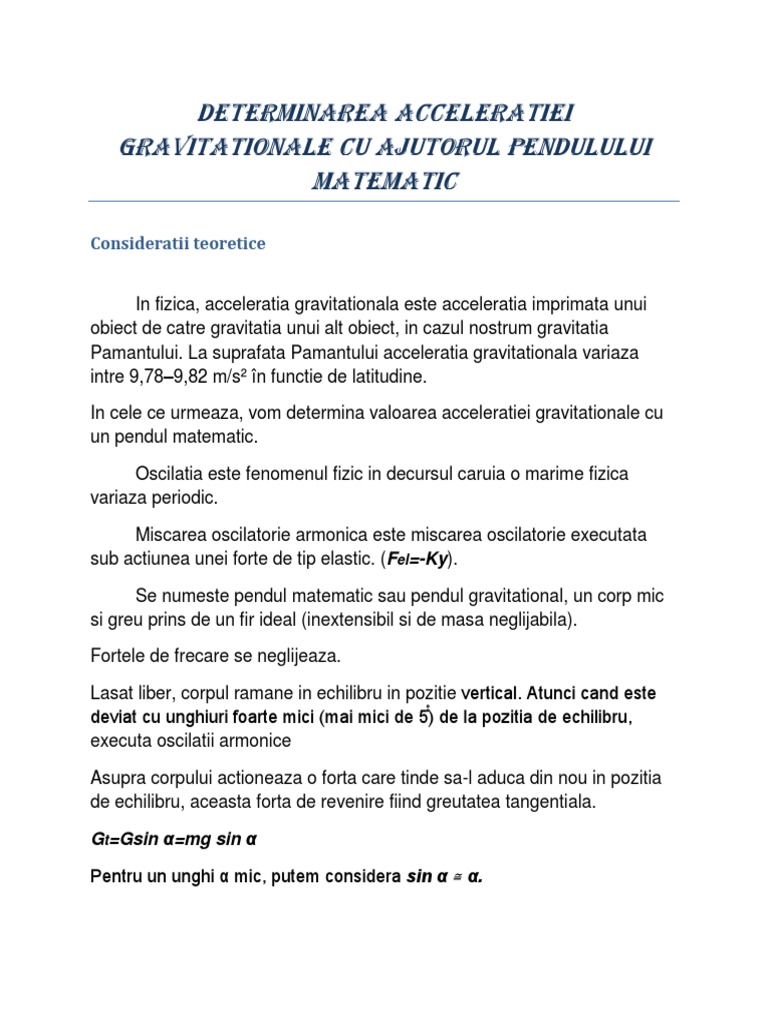 Determinarea Valorii Acceleratiei Gravitationale Cu Ajutorul Pendulului Gravitationale 1