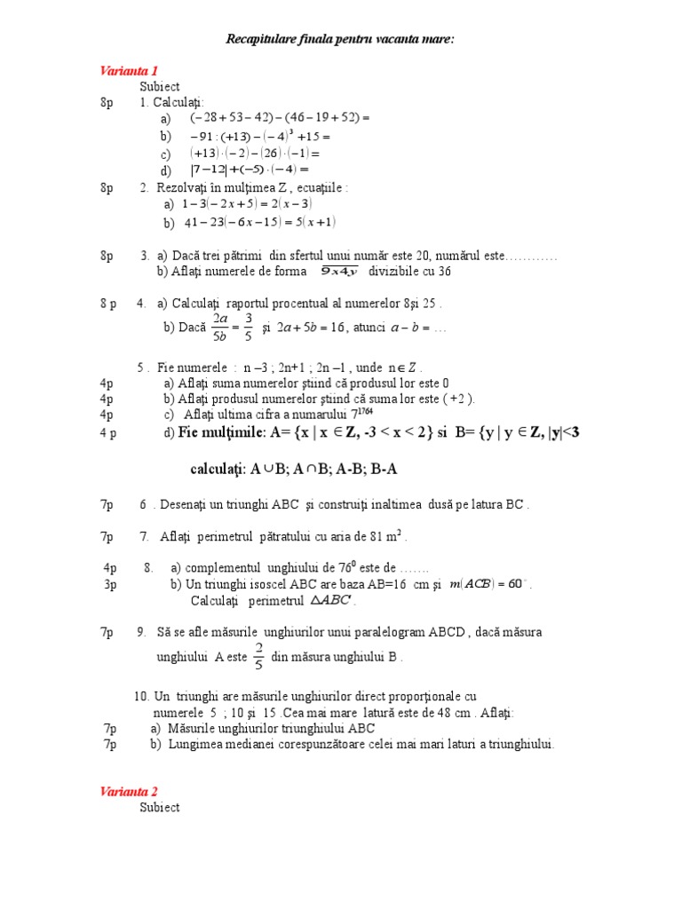 Clasa A Vi A Test Initial 1 Partea A Ii A Youtube